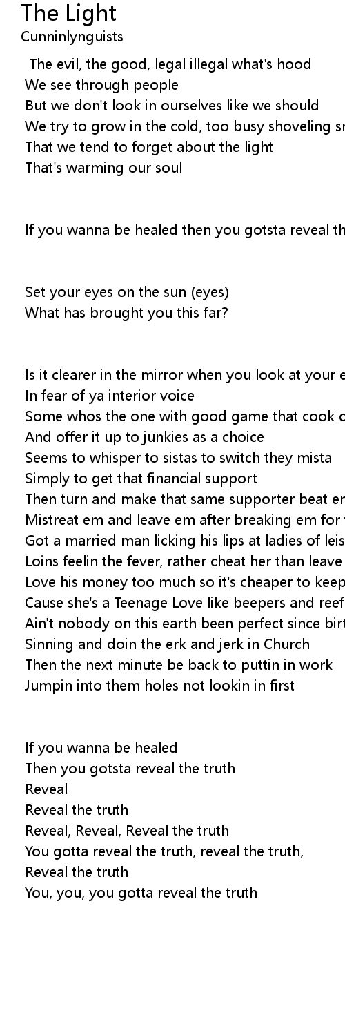 If you wanna be healed then you gotsta reveal the truth |