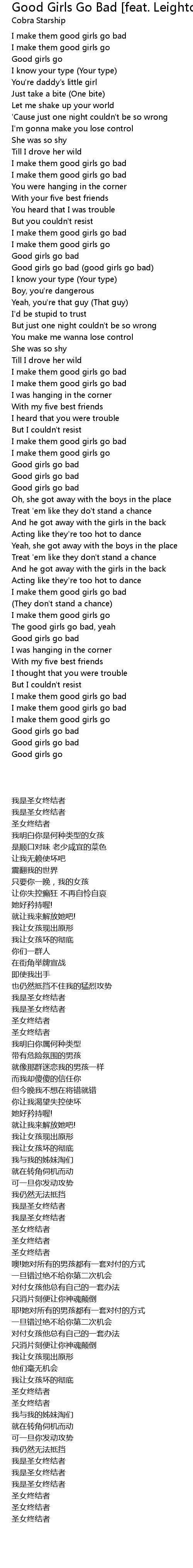 Good Girls Go Bad [feat. Leighton Meester] (Album Version) Lyrics
