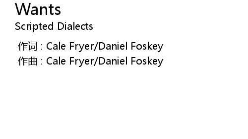 | [00:00.000] | zuo qu : Cale Fryer Daniel Foskey |