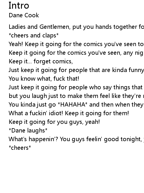 Ladies and Gentlemen, put you hands together for Dane Cook, come on!