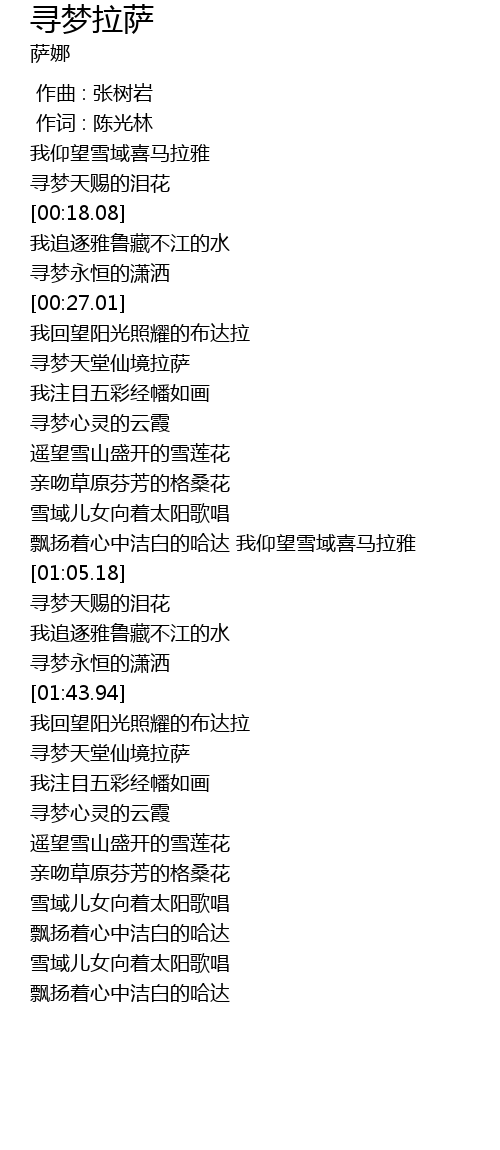 | [01:49.18] | 寻梦天堂仙境拉萨 |
