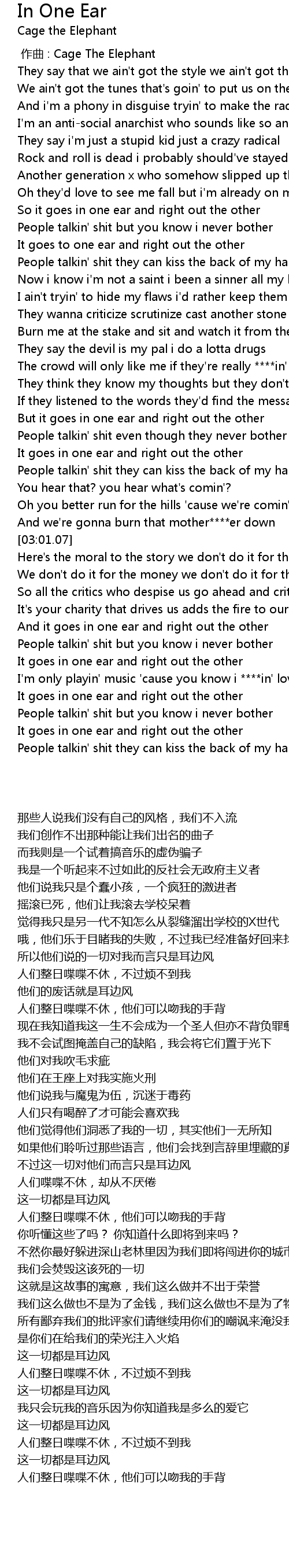 | [00:00.00] | 作曲 : Cage The Elephant |