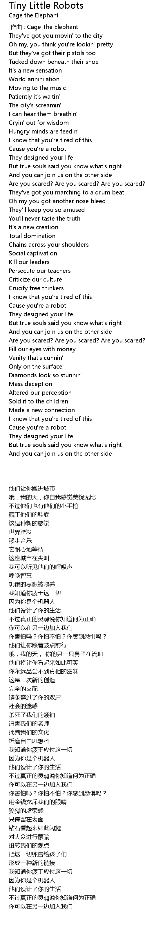 | [00:00.00] | 作曲 : Cage The Elephant |