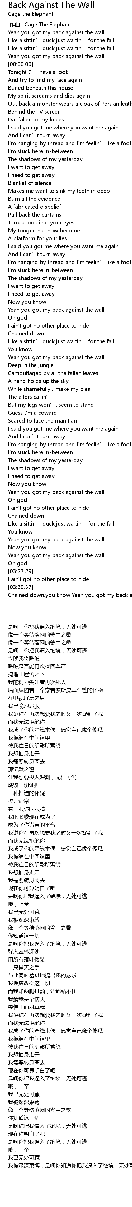 | [03:36.45] | Chained down.you know Yeah you got my back against the wall |