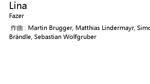 | [00:00.000] | 作曲 : Martin Brugger, Matthias Lindermayr, Simon Popp, Paul Brändle, Sebastian Wolfgruber |