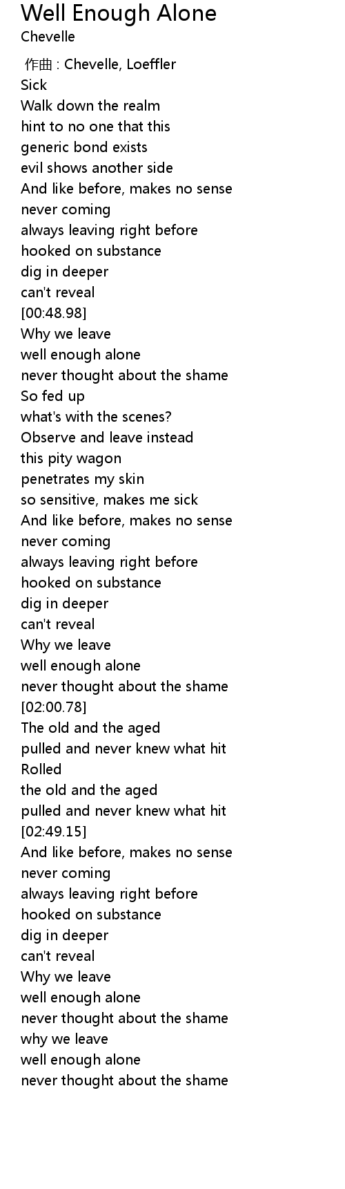| [00:00.00] | zuo qu : Chevelle, Loeffler |