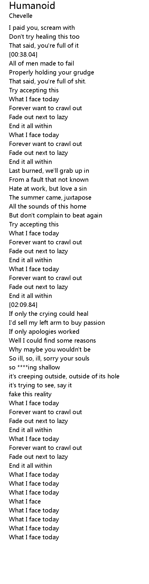| [02:40.52] | so ****ing shallow |