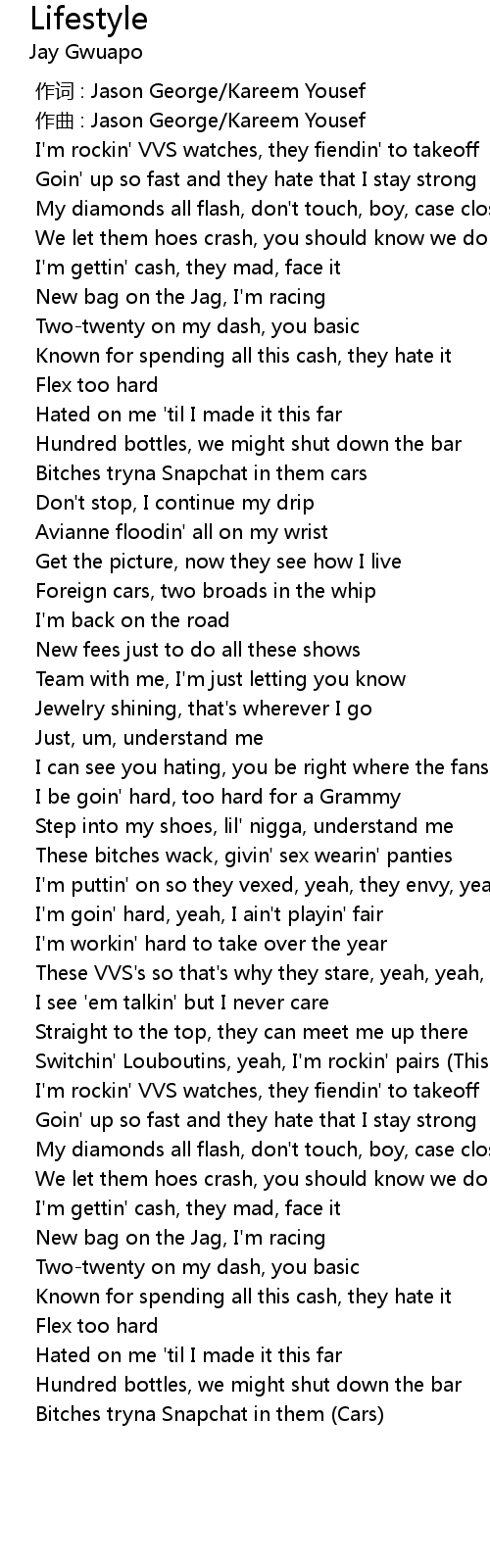 | [01:09.283] | I'm puttin' on so they vexed, yeah, they envy, yeah |