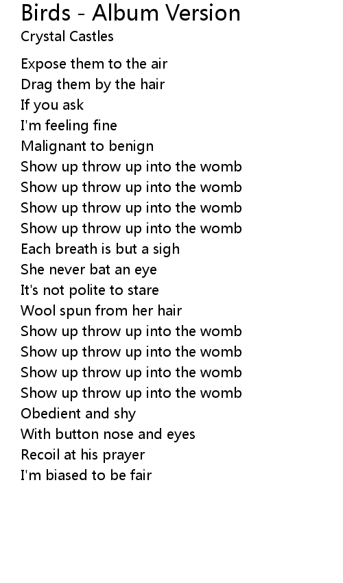 Show up throw up into the womb |
