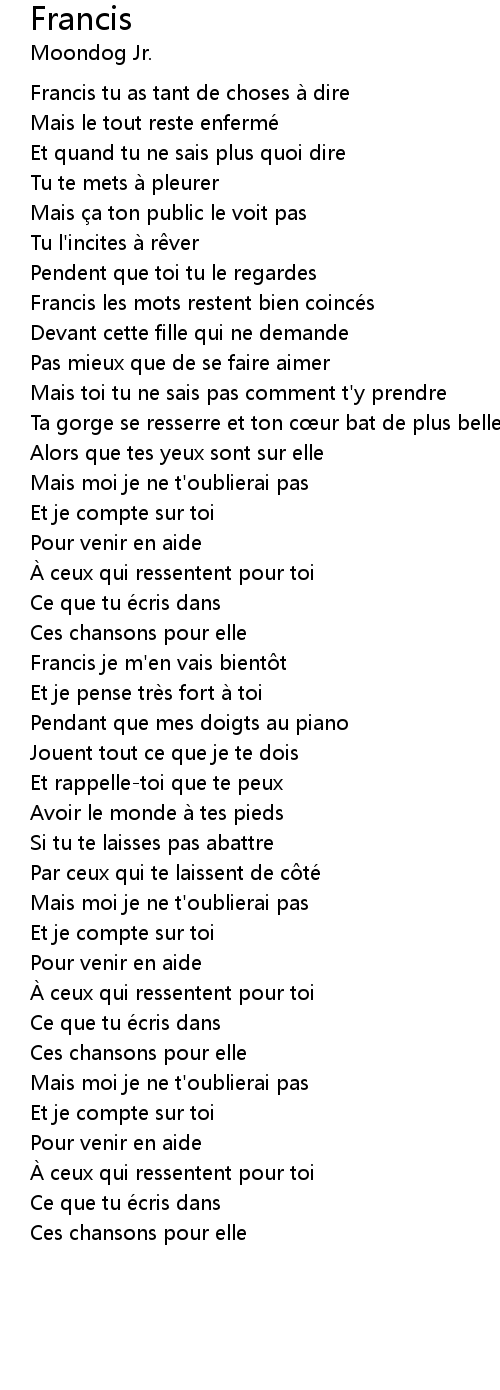| [00:00.00] | Francis tu as tant de choses a dire |