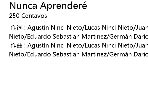 | [00:00.000] | 作词 : Agustín Ninci Nieto/Lucas Ninci Nieto/Juan Manuel Ninci Nieto/Eduardo Sebastian Martinez/Germán Darío Mercado |