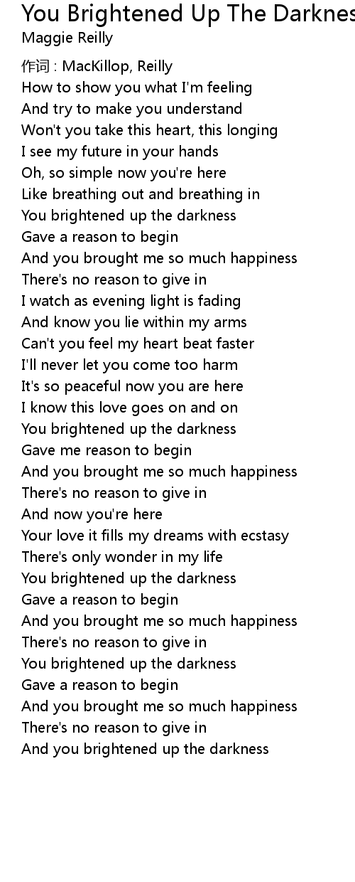 | Song | You Brightened Up The Darkness |