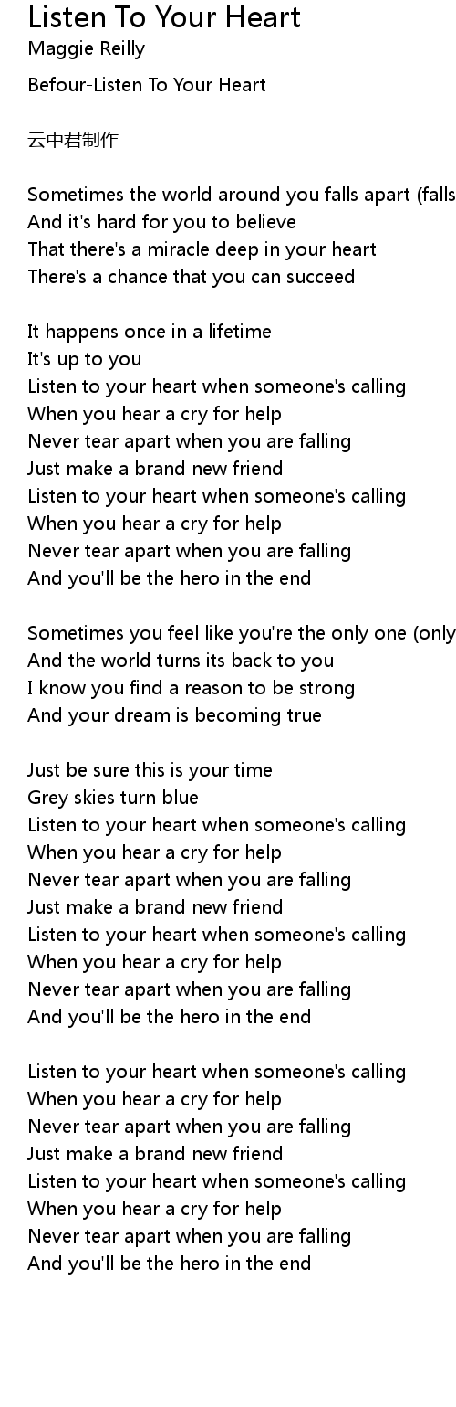 | Listen to your heart when someone' s calling | |