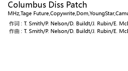 | [00:00.000] | 作曲 : T. Smith/P. Nelson/D. Buildt/J. Rubin/E. McDaniel/J Rawls |