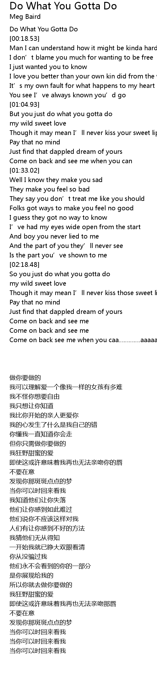 | [02:45.43] | Come on back see me when you caa. aaaaan oh oh |