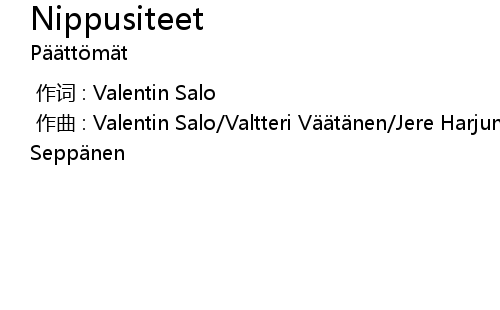 | [00:00.000] | 作曲 : Valentin Salo/Valtteri Väätänen/Jere Harjunniemi/Juho Seppänen |