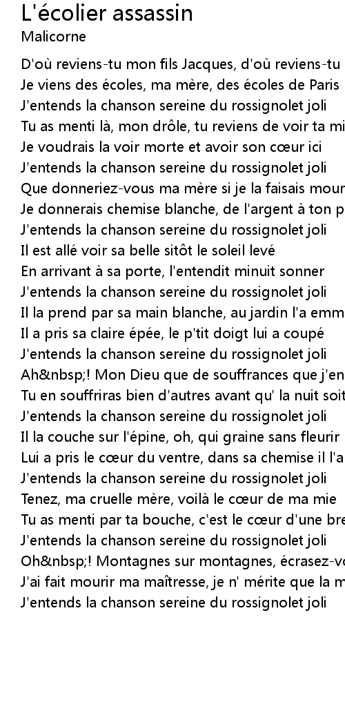 | J' ai fait mourir ma ma tresse, je n' mé rite que la mort | |