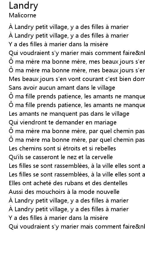 | À Landry petit village, y a des filles a marier | |