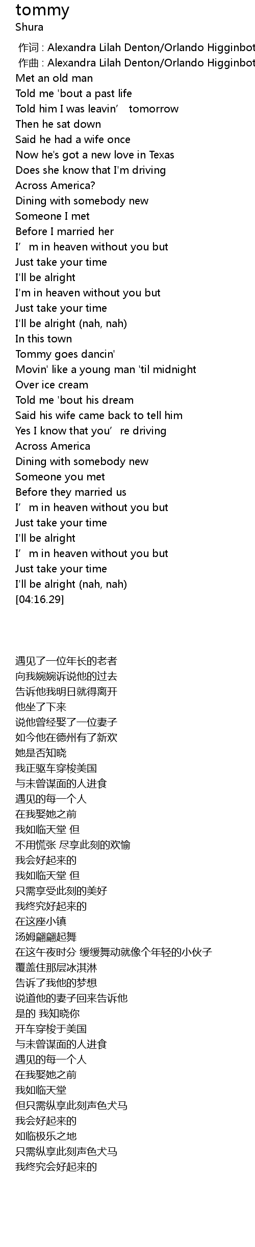 | [00:00.000] | 作词 : Alexandra Lilah Denton/Orlando Higginbottom |
