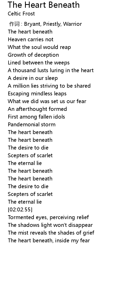 | [02:26.41] | Tormented eyes, perceiving relief |