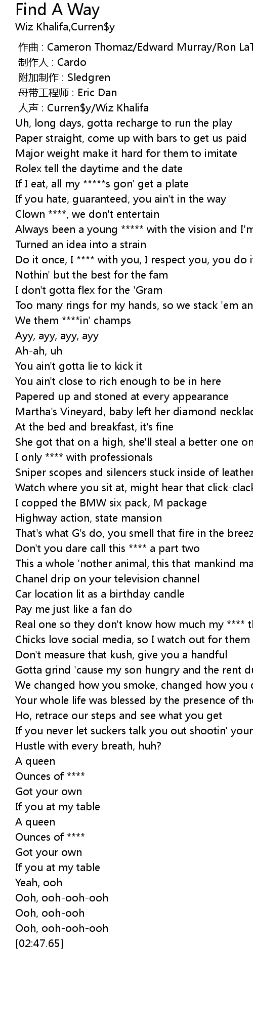 | [00:04.000] | 人声 : Curren$y/Wiz Khalifa |