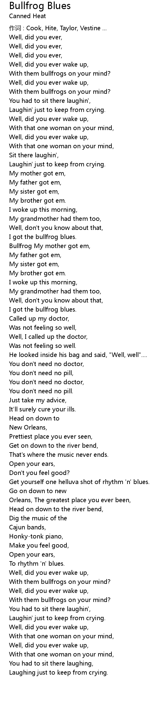 | Song | Bullfrog Blues |