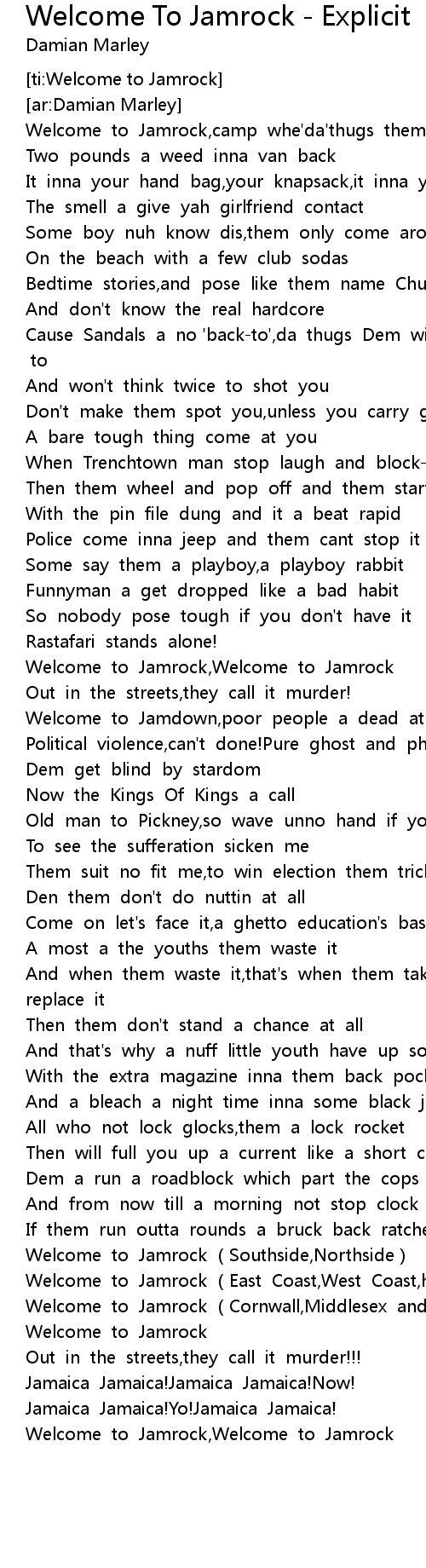 | [ti:Welcome to Jamrock] | |