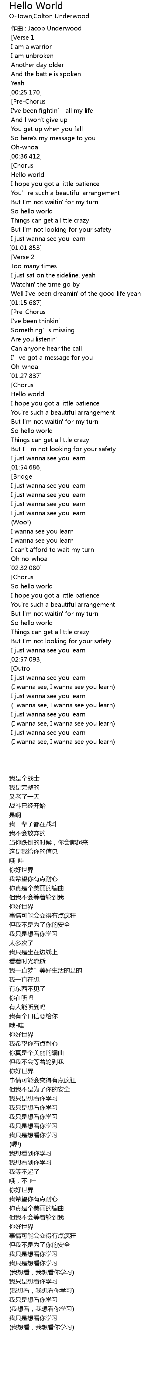 | Song | Hello World |