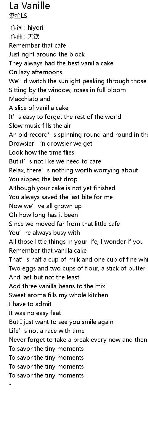 | [02:05.699] | Sweet aroma fills my whole kitchen |
