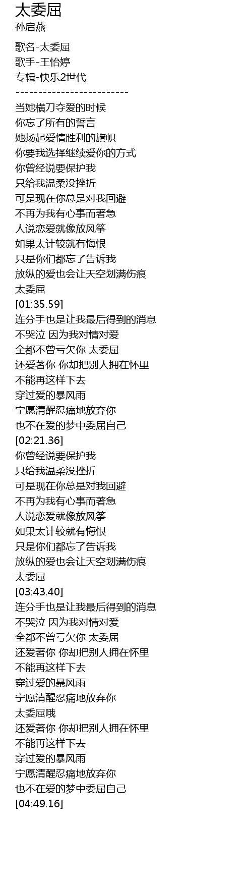 | [01:50.07] | 全都不曾亏欠你 太委屈 |