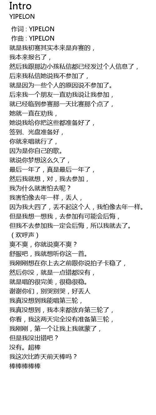 | [00:00.000] | 作词 : YIPELON |