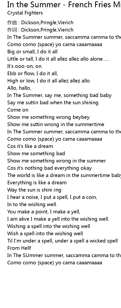 | Song | In the Summer - French Fries Mix |