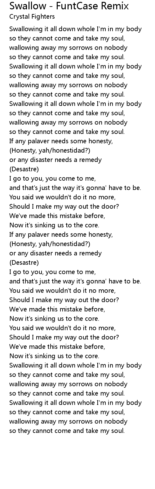 Swallowing it all down whole I'm in my body |
