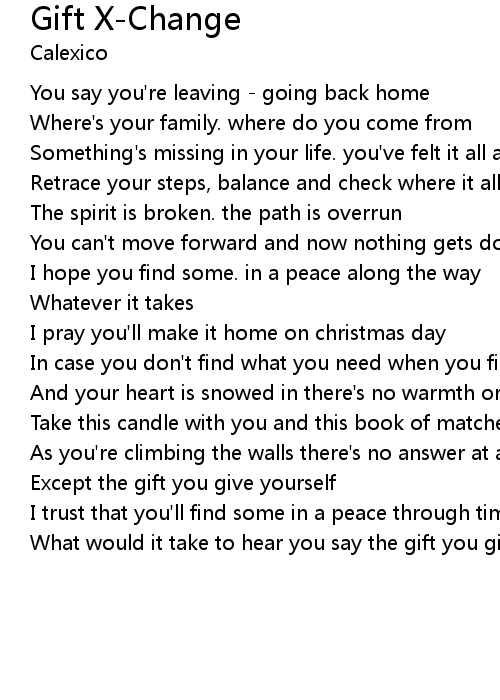 You say you're leaving - going back home |