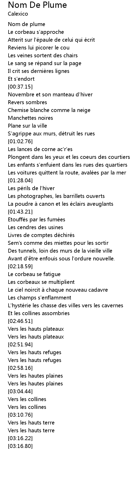 | [00:18.13] | Atterit sur l'épaule de celui qui écrit |