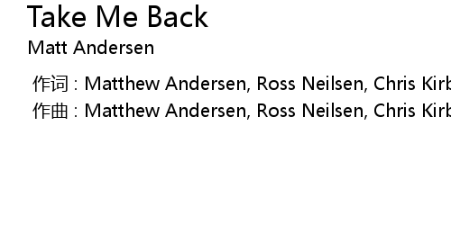 | [00:00.000] | 作词 : Matthew Andersen, Ross Neilsen, Chris Kirby |
