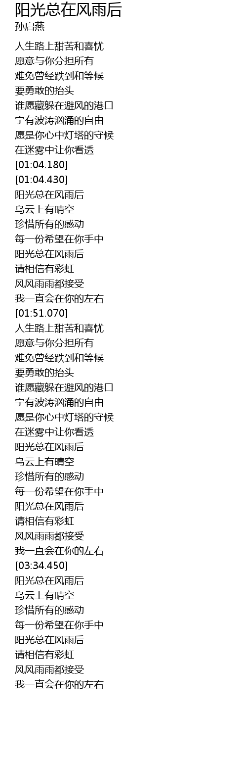 | [03:36.700] | yáng guāng zǒng zài fēng yǔ hòu |
