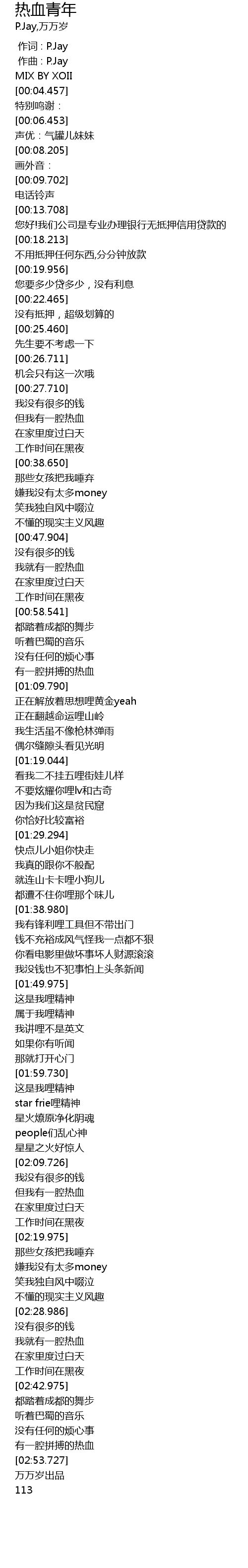 | [02:50.975] | yǒu yī qiāng pīn bó de rè xuè |