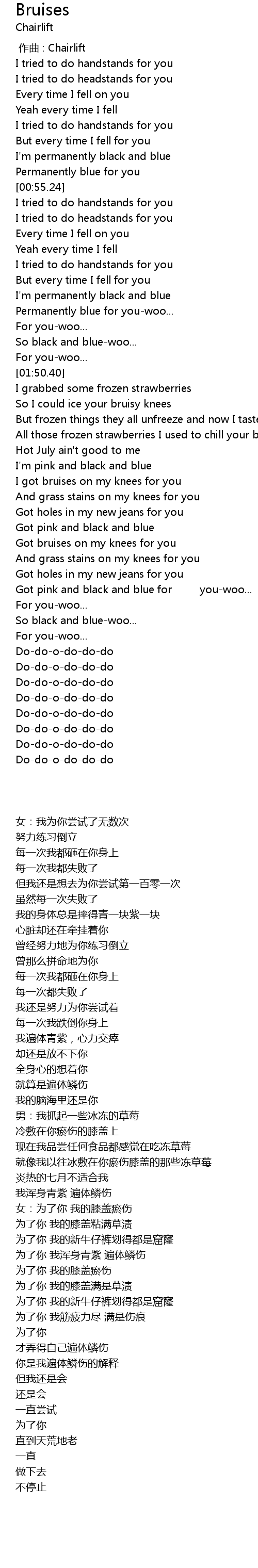 | [02:37.72] | Got bruises on my knees for you |