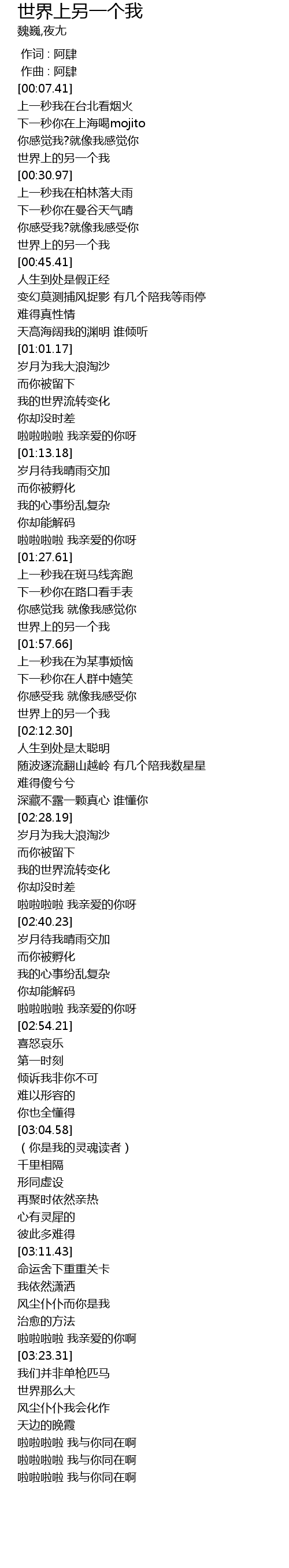 | [01:54.80] | shì jiè shang de lìng yí gè wǒ |