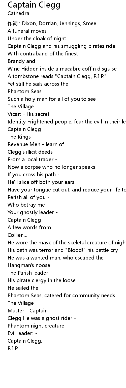 | 作词 : Dixon, Dorrian, Jennings, Smee | |