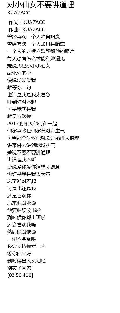 | [02:03.963] | 她说不要不要讲道理 |