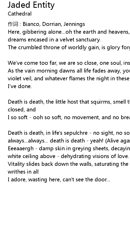 | Death is death, in life's sepulchre - no sight, no sound, no cry, and always...always... death is death - yeah! (Alive again). | |