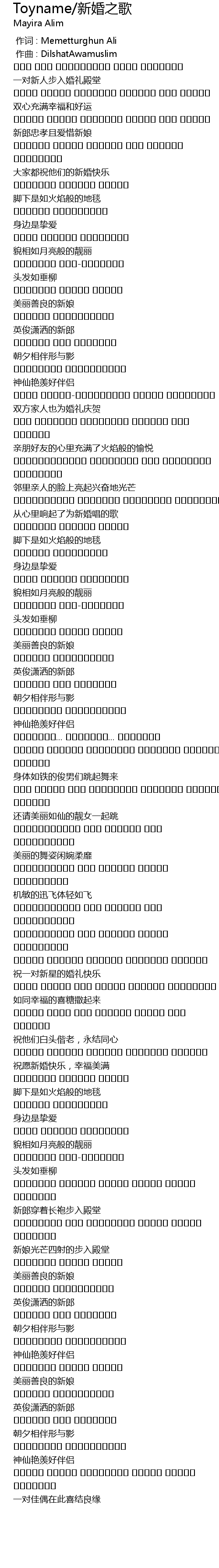 | [00:37.034] | بىر جۈپ يۇلتۇزنىڭ تويى مۇبارەك |
