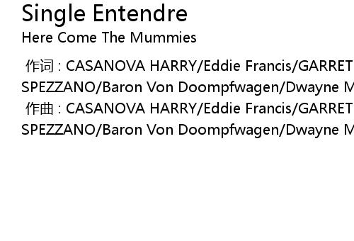 | [00:00.000] | 作词 : CASANOVA HARRY/Eddie Francis/GARRET E. WILLIAMS/O.G. SPEZZANO/Baron Von Doompfwagen/Dwayne Matthews |