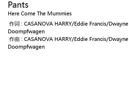 | [00:00.000] | 作词 : CASANOVA HARRY/Eddie Francis/Dwayne Matthews/Baron Von Doompfwagen |