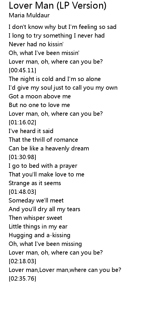 Lover man,Lover man,where can you be? |