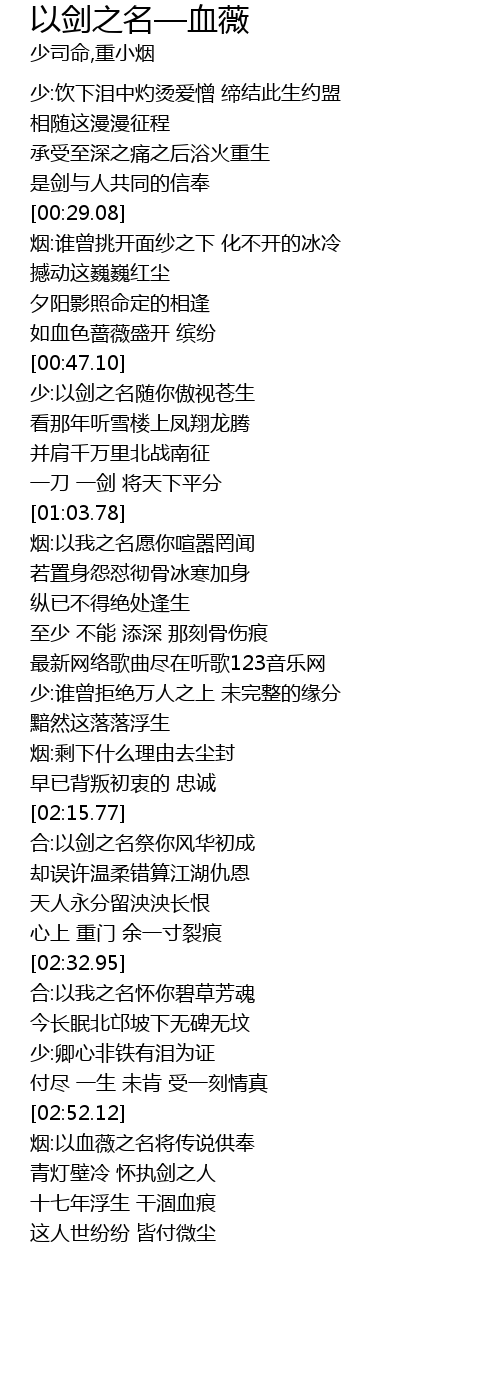 | [00:47.58] | 少:以剑之名随你傲视苍生 |