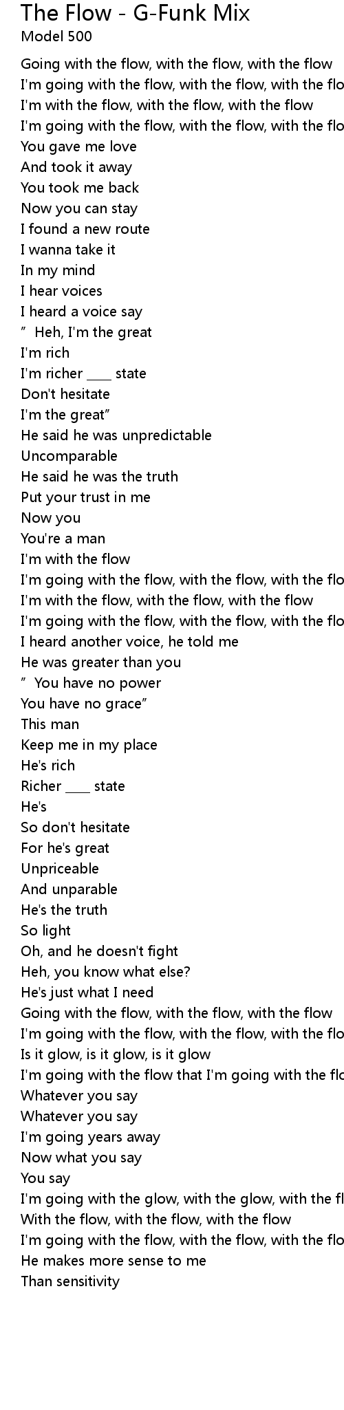 | I'm with the flow, with the flow, with the flow | |