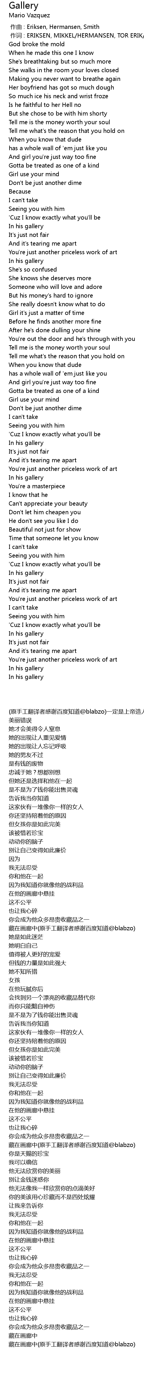 | [00:01.00] | 作词 : ERIKSEN, MIKKEL/HERMANSEN, TOR ERIK/SMITH, SHAFFER |